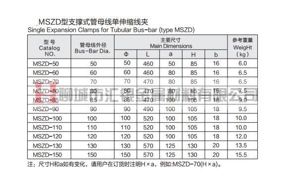 • MSZD型支撐式管母線單伸縮線夾